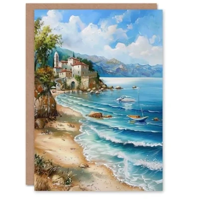 Artery8 Seaside Beach Scene Coastal Landscape Painting Greeting Birthday Card Him Her All Blank
