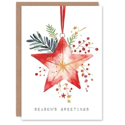 Artery8 Seasons Greetings Hanging Red Star Bauble Blank For Him Or Her Art Xmas Festive Christmas Card