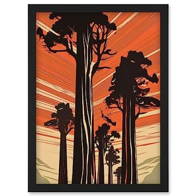 Artery8 Sequoia National Forest Large Tree Linocut Poster Artwork Framed Wall Art Print A4