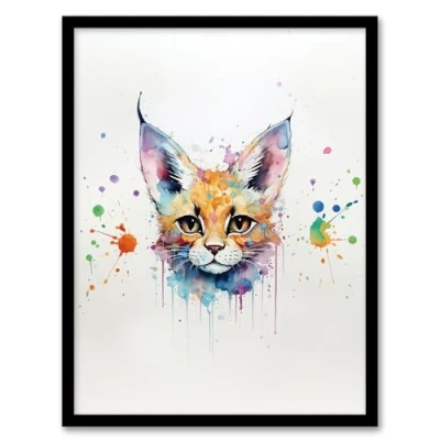 Artery8 Serval Cat Lovers Gift Watercolour Pet Portrait Painting Artwork Framed Wall Art Print A4