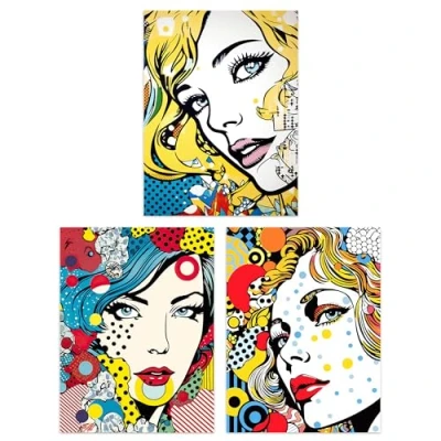 Artery8 Set of 3 A4 Pop Art Women Faces Artworks Comic Book Style Portraits with Patterns Unframed Wall Living Room Poster Prints Pack