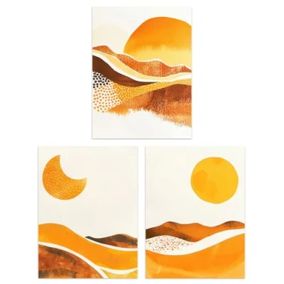 Artery8 Set of 3 Abstract Amber Mountain Landscape Moon Living Room 12X16 Inch Wall Art Prints Pack