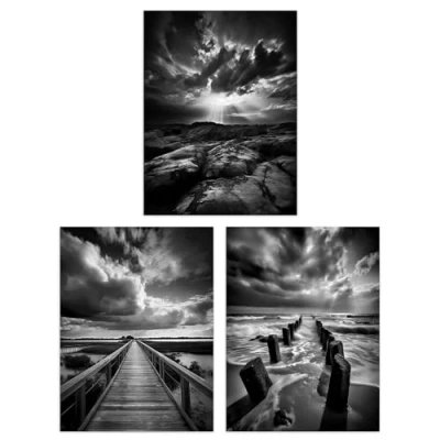 Artery8 Set of 3 Atmospheric Clouds Black and White Photographs Dramatic Coastal Landscapes Unframed Wall Art Living Room Poster Prints Pack