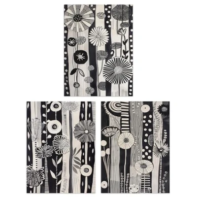 Artery8 Set of 3 Black White Pattern Folk Art Flowers Living Room 12X16 Inch Wall Prints Pack