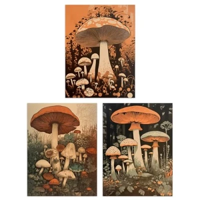 Artery8 Set of 3 Botanical Fungi Mushroom Paintings Earthy Flora Fauna Nature Unframed Wall Art Living Room Poster Prints Pack