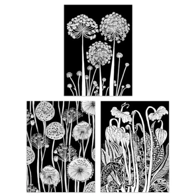 Artery8 Set of 3 Elegant Allium and Arisaema Flowers Artwork Paintings White on Black Unframed Wall Art Living Room Poster Prints Pack