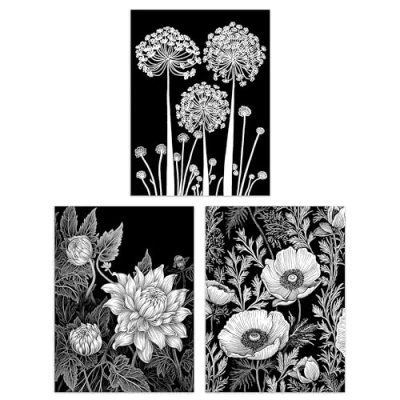Artery8 Set of 3 Elegant Single Allium Anemone and Dahlia Flowers Floral Black White Striking Impact Artwork Unframed Wall Art Living Room Poster Prints Pack