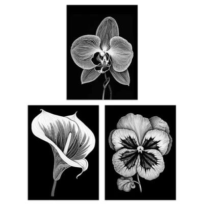 Artery8 Set of 3 Elegant Single Orchid Cala Lily Pansy Spring Flowers Black and White Floral Impact Artworks Unframed Wall Art Living Room Poster Prints Pack