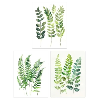 Artery8 Set of 3 Fern Fronds Leaves Botanical Watercolour Living Room 12X16 Inch Wall Art Prints Pack