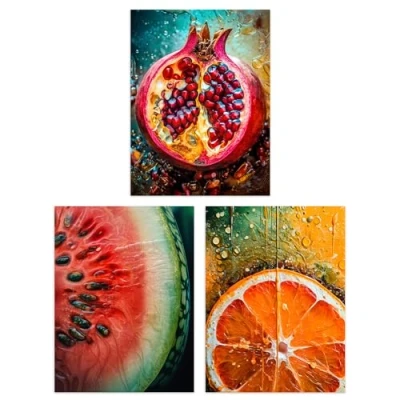 Artery8 Set of 3 Fruit Paintings Study Orange Pomegranate Watermelon Unframed Wall Art Living Room Poster Prints Pack
