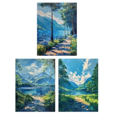 Artery8 Set of 3 Loch Katrine Scottish Highlands Painting Living Room 12X16 Inch Wall Art Prints Pack