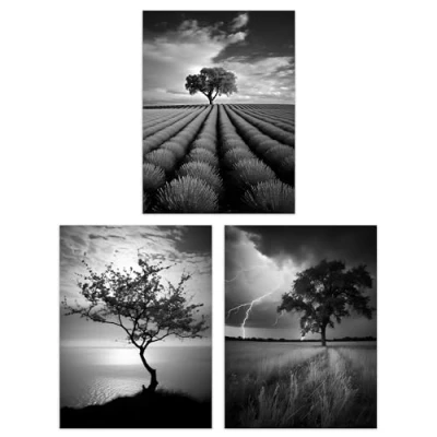 Artery8 Set of 3 Lone Tree and Storm Clouds Black White Photographs Atmospheric Coastal Landscape Unframed Wall Art Living Room Poster Prints Pack
