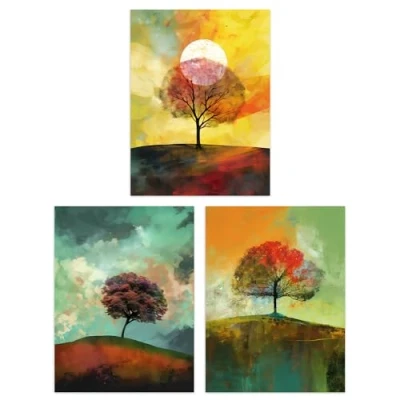 Artery8 Set of 3 Lone Tree Paintings by Jan Harper Earthy Moody Landscape Aesthetic Unframed Wall Art Living Room Poster Prints Pack