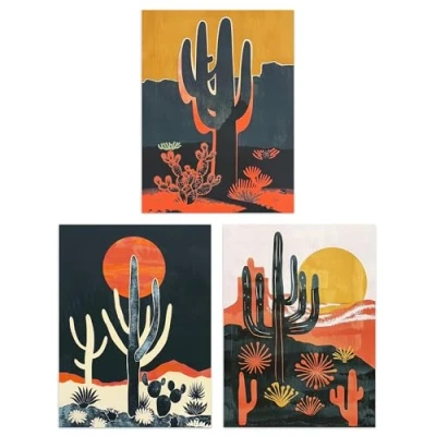 Artery8 Set of 3 Modern Desert Cacti Sunset Landscapes Living Room 12X16 Inch Wall Art Prints Pack