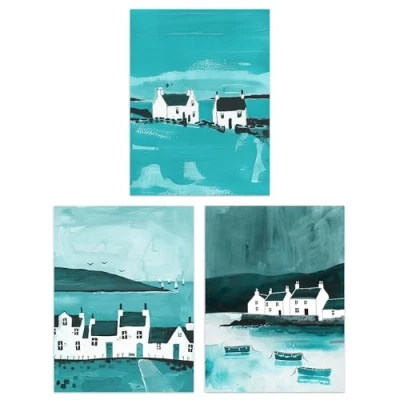 Artery8 Set of 3 Scottish Hebrides Teal Isle Mull Coastal Living Room 12X16 Inch Wall Art Prints Pack