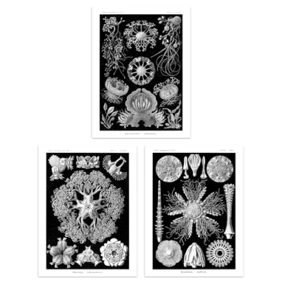 Artery8 Set of 3 Sea Urchins Black and White Haeckel Vintage Illustrations Detailed Echinidea Starfish Study Unframed Wall Art Living Room Poster Prints Pack