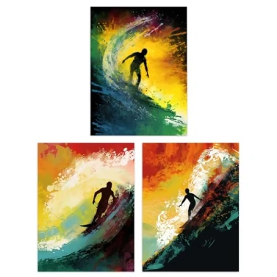 Artery8 Set of 3 Surfing at Sunset Paintings Bright Action Seascape Aesthetic Unframed Wall Art Living Room Poster Prints Pack