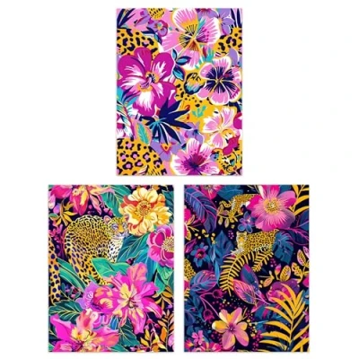 Artery8 Set of 3 Vibrant Flower Leopard Floral Jungle Living Room 12X16 Inch Wall Art Prints Pack