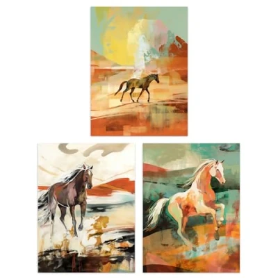 Artery8 Set of 3 Wild Desert Horses Bright Sandy Tones Modern Aesthetic Unframed Wall Art Living Room Poster Prints Pack