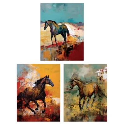 Artery8 Set of 3 Wild Horses Oil Paintings Galloping Wilderness Canada Earthy Tones Aesthetic Unframed Wall Art Living Room Poster Prints Pack