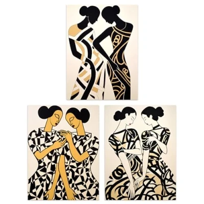 Artery8 Set of 3 Women Together Matisse Style Abstract Paintings Black and Beige Figures Unframed Wall Art Living Room Poster Prints Pack