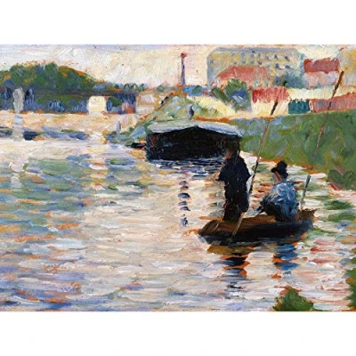 Artery8 Seurat View Of The Seine Painting Premium Wall Art Canvas Print 18X24 Inch