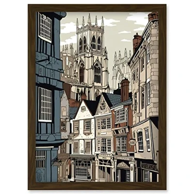 Artery8 Shambles Street Cityscape with York Minster Towers Artwork Framed Wall Art Print A4