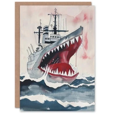 Artery8 Shark Warship Surreal Concept Art Watercolour For Him Man Birthday Card