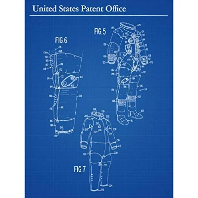 Artery8 Shepard NASA Space Suit Main Body 1973 Patent Plan Large Wall Art Poster Print Thick Paper 18X24 Inch