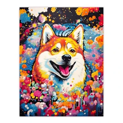 Artery8 Shiba Inu Dog Lover Gift Pet Portrait Colourful Artwork Painting Large Wall Art Poster Print Thick Paper 18X24 Inch