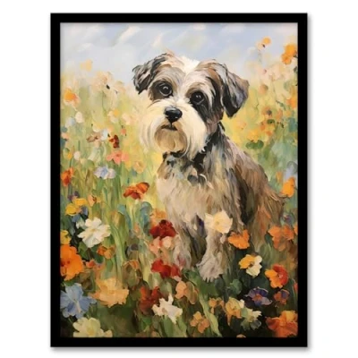 Artery8 Shih Tzu In Wildflower Field Claude Monet Style Dog Oil Painting Artwork Framed Wall Art Print A4