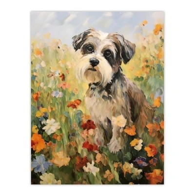 Artery8 Shih Tzu In Wildflower Field Claude Monet Style Dog Oil Painting Extra Large XL Wall Art Poster Print