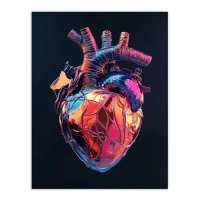 Artery8 Shiny Anatomical Human Heart Colourful Modern Living Room Extra Large XL Wall Art Poster Print