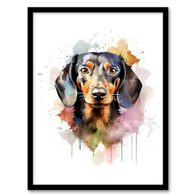 Artery8 Shorthaired Dachshund Lovers Gift Watercolour Pet Portrait Painting Artwork Framed Wall Art Print A4