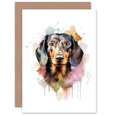 Artery8 Shorthaired Dachshund Lovers Gift Watercolour Pet Portrait Painting Artwork Sealed Greeting Card Plus Envelope Blank inside