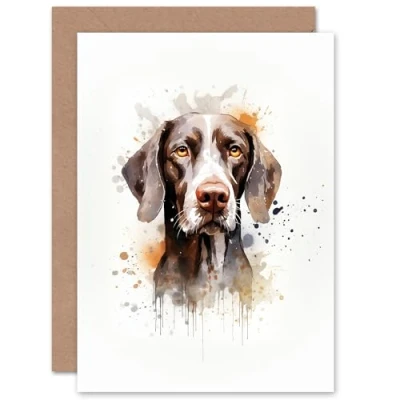 Artery8 Shorthaired German Pointer Lovers Gift Watercolour Pet Portrait Painting Artwork Sealed Greeting Card Plus Envelope Blank inside