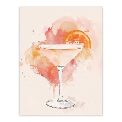 Artery8 Sidecar Cocktail Pastel Pink Orange Watercolour Kitchen Large Wall Art Poster Print Thick Paper 18X24 Inch