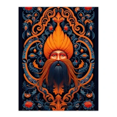 Artery8 Sikh Guru and Botanical Pattern Vibrant Concept Art Orange Blue Vegetal Design Large Wall Poster Print Thick Paper 18X24 Inch
