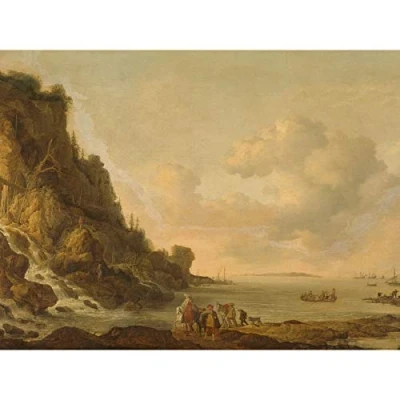 Artery8 Simon De Vlieger Rocky Coast Ships River Painting Premium Wall Art Canvas Print 18X24 Inch