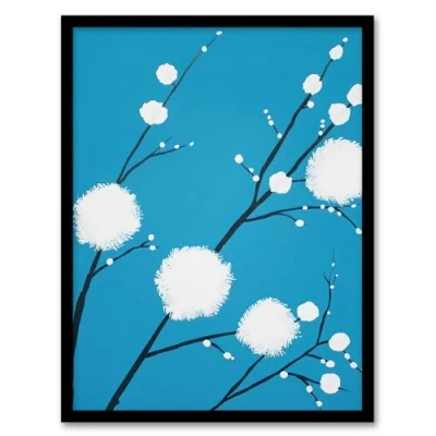 Artery8 Simple Cotton on Branch Design Blue Spring Living Room Artwork Framed Wall Art Print A4