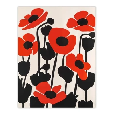 Artery8 Simple Poppy Flowers in Bloom Graphic Design Living Room Large Wall Art Poster Print Thick Paper 18X24 Inch