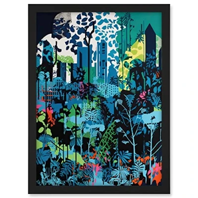 Artery8 Singapore Forest Cityscape Modern Bold Landscape Artwork Framed A3 Wall Art Print