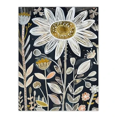 Artery8 Single Daisy Flower Artwork Dark Floral Folk Art Living Room Extra Large XL Wall Poster Print