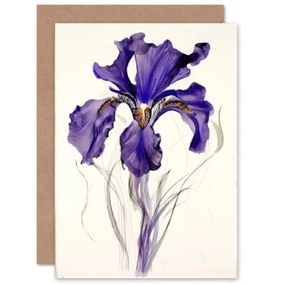 Artery8 Single Iris Watercolour Flower Bloom for Wife Her Mum Sister Daughter Mom Gran Nan Birthday Thank You Mothers Day Blank Art Greeting Card