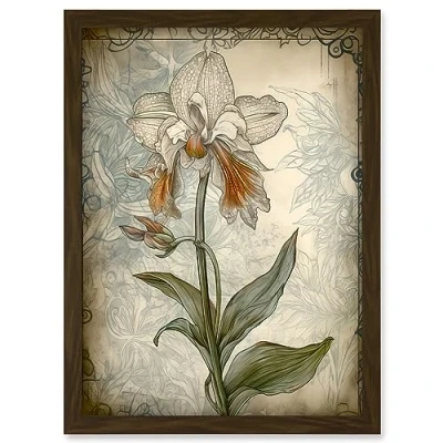 Artery8 Single Orchid Flower Pastel Colour Art Nouveau Artwork Framed A3 Wall Print