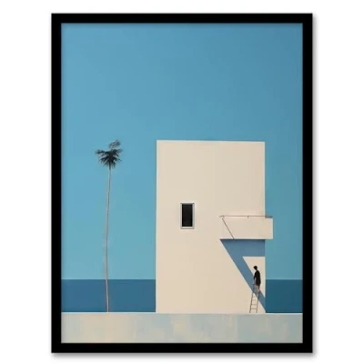 Artery8 Single Palm Tree By Amy Denver Minimalist Soft Pastel Blue Minimalism Simple Modern Artwork Framed Wall Art Print A4