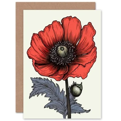 Artery8 Single Red Poppy Anemone Flower for Wife Her Mum Sister Daughter Mom Gran Nan Birthday Mothers Day Thank You Blank Art Greeting Card
