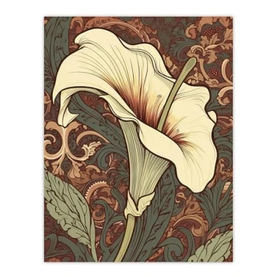 Artery8 Single White Cala Lily Flower Art Nouveau Painting Pastel Colour Teal Green Red William Morris Style Patterns Colourful Bright Floral Modern Artwork Large Wall Poster Print 18X24 Inch
