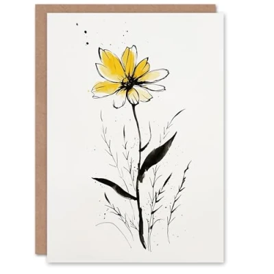 Artery8 Single Yellow Daisy Flower Floral Ink Drawing For Her Woman Birthday Card