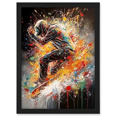 Artery8 Skateboarder Vibrant Splat Paint Action Shot Artwork Framed A3 Wall Art Print